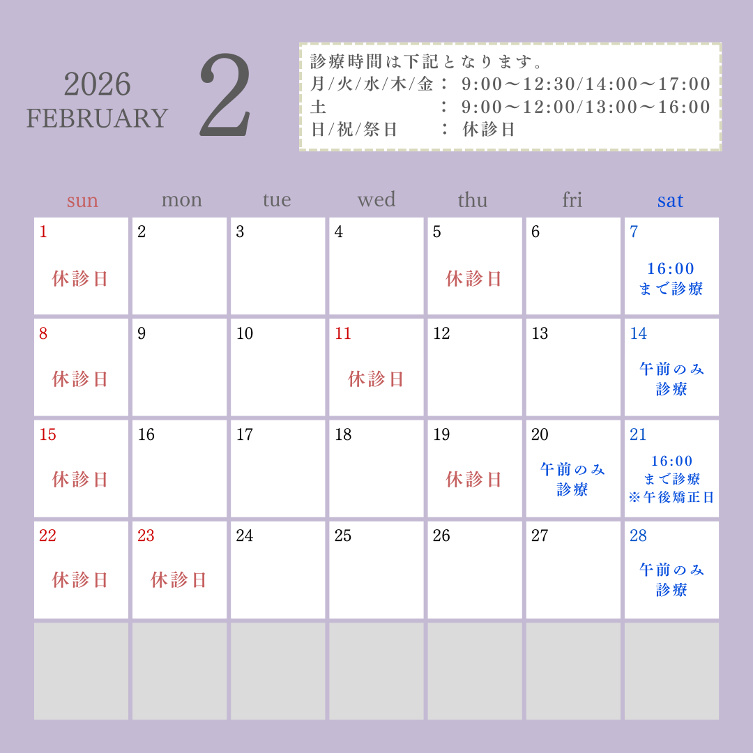 2026年2月の診療スケジュールについて